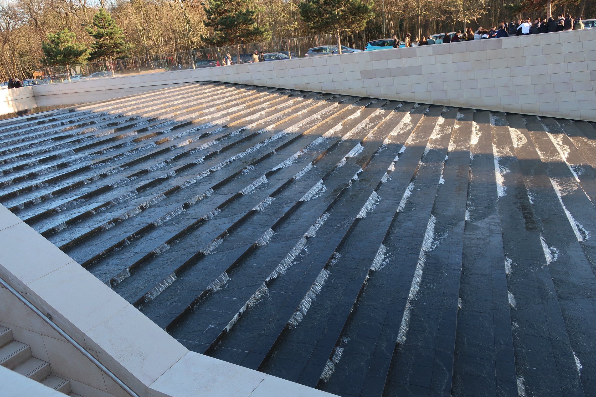 View fullsize  France 2026--Paris--Louis Vuitton Fondation--Gehry building water fall ioutside